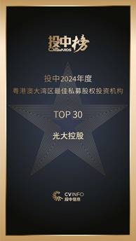 光大控股连续六年获评投中榜「粤港澳大湾区最佳私募股权投资机构top30」